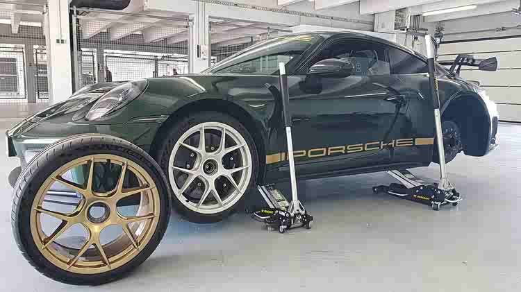 热身圈中,我最初使用的是与贝格迈斯特纪录圈完全相同的设定:前轴极其精准,后轴相对活跃。但对我而言,更保守的前轴+更稳定的后轴则更容易建立极限信心。仅仅调整前轴车高1毫米,就能明显改变车辆性格,前轴稳定杆从中调整到硬,后轴设定保持不变。最终,车辆达成了近乎完美的中性平衡。