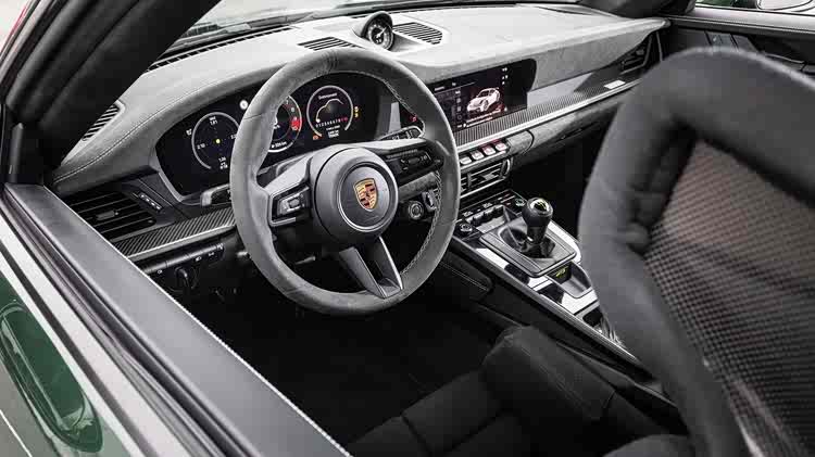 真正让这台GT3成为“特别存在”的,不只是外观,还有一个保时捷内部的选装代码:G0W。G0W的含义是:6挡GT运动型手动变速箱。简单来说:手动挡。离合、刹车、油门——无论是在卡塞尔山区,还是在赛道上,这三块踏板与那根短小而精准的换挡杆,都是这块蛋糕上的“甜美樱桃”。换挡杆在紧致清晰的挡位槽中“跳舞”,简直美妙。