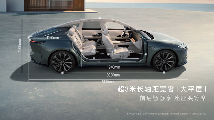 这车的尺寸是真的大。长5130mm、宽1965mm,轴距直接干到了3020mm