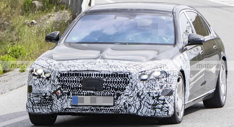 从曝光的测试车谍照中可以看出,新车的前大灯组内部结构有所更新,采用了以三叉星辉为灵感的光源设计,在点亮时能够提供较高的辨识度。同时,前脸部分的中网尺寸似乎进一步扩大,下边缘区域与前包围的散热开口相互融合,呈现出更整体化的视觉效果。这种设计变化可能与奔驰家族最新的设计语言有关,旨在强化车型的独特身份。