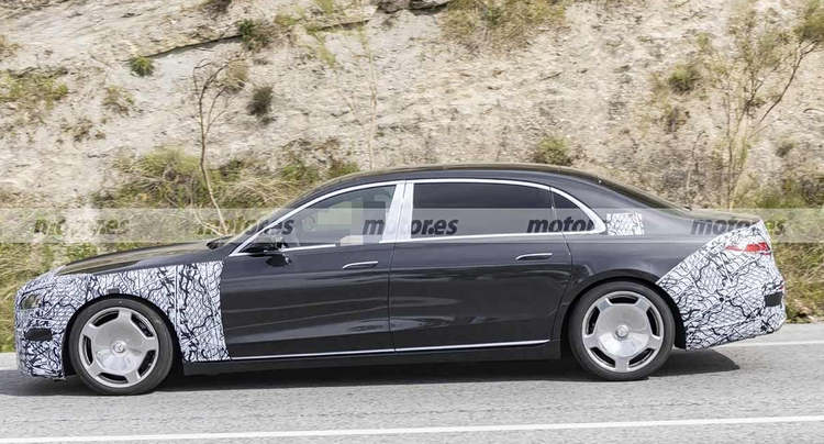车身侧面的伪装覆盖了前翼子板、C柱以及后侧围等部位,暗示这些区域在造型上可能会有细微改动。经典的镀铬轮圈设计得以保留,继续强调车辆的豪华属性。隐藏式车门把手和宽幅镀铬装饰条等细节依旧存在,而作为迈巴赫版本的标志性特征,后车厢的轴距加长处理确保了车内空间的宽敞程度。这些元素共同维持了车型一贯的庄重感。