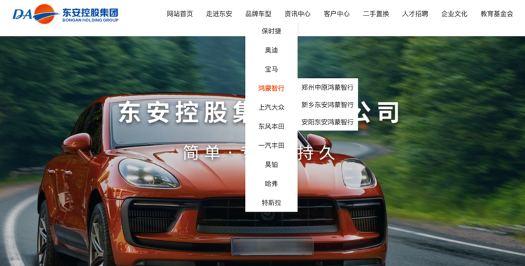 在2024年5月发布的中国汽车经销商集团百强排行榜中,东安控股凭借2023年62.01亿元的营收和2.34万台销量,列第80位。根据其官网资料显示,东安集团在国内设有40余家子公司,经销产品覆盖5万至500万元的主流车型。其代理品牌多达12个,除保时捷、宝马、奥迪外,还包括上汽大众、一汽丰田、广汽本田等合资品牌,以及鸿蒙智行等新能源品牌。
