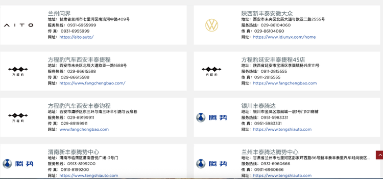 面对传统油车销售的势弱,新丰泰同样采取了断臂求生、向新能源转型的策略。2024年7月份出售了苏州新丰泰丰田、无锡新丰泰及扬州新丰泰钧盛的全部股权;2025年3月出售出售西安新丰泰泾河物流开发全部股权;2025年10月,已经营10年的北京新丰泰博奥奥迪店闭店。在出售、关停之外,新丰泰将重点放在了西北地区新能源网络建设上,成功获得方程豹、腾势、问界等多个品牌的授权。截至2024年底,已获得兰州、银川、渭南三地腾势品牌授权,西安两店和延安的方程豹品牌授权,以及兰州地区问界品牌授权。