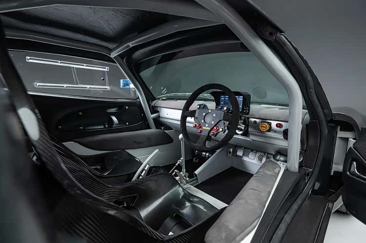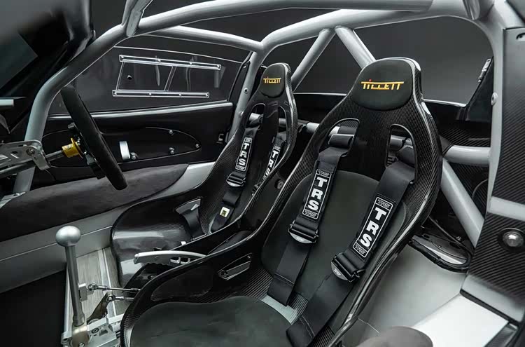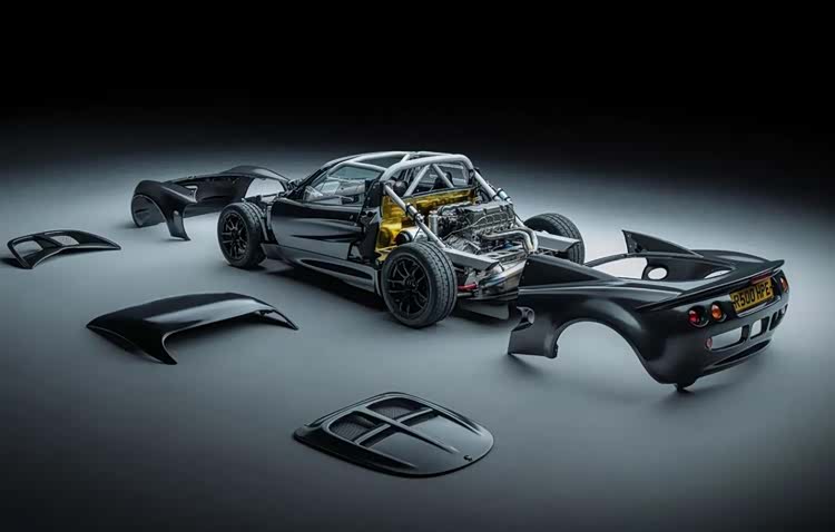 车架方面,保留莲花挤压铝合金单体壳,但完全拆解、重新电镀,其余80%以上部件全部重新设计。整车换装全碳纤维车身,由复合材料厂烘焙成型,每个前后壳体重量仅为5kg,单手轻松提起来。车窗采用聚碳酸酯材料取代玻璃,内饰装饰几乎没有,仅能看到Tillett赛车座椅、T45钢制防滚架、灭火系统,没有空调也没有音响。