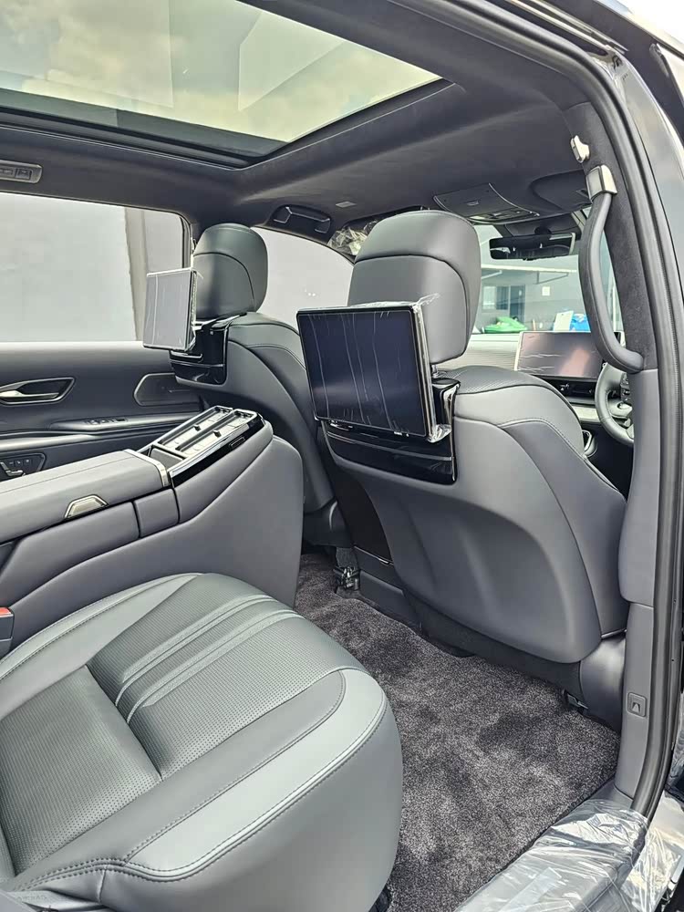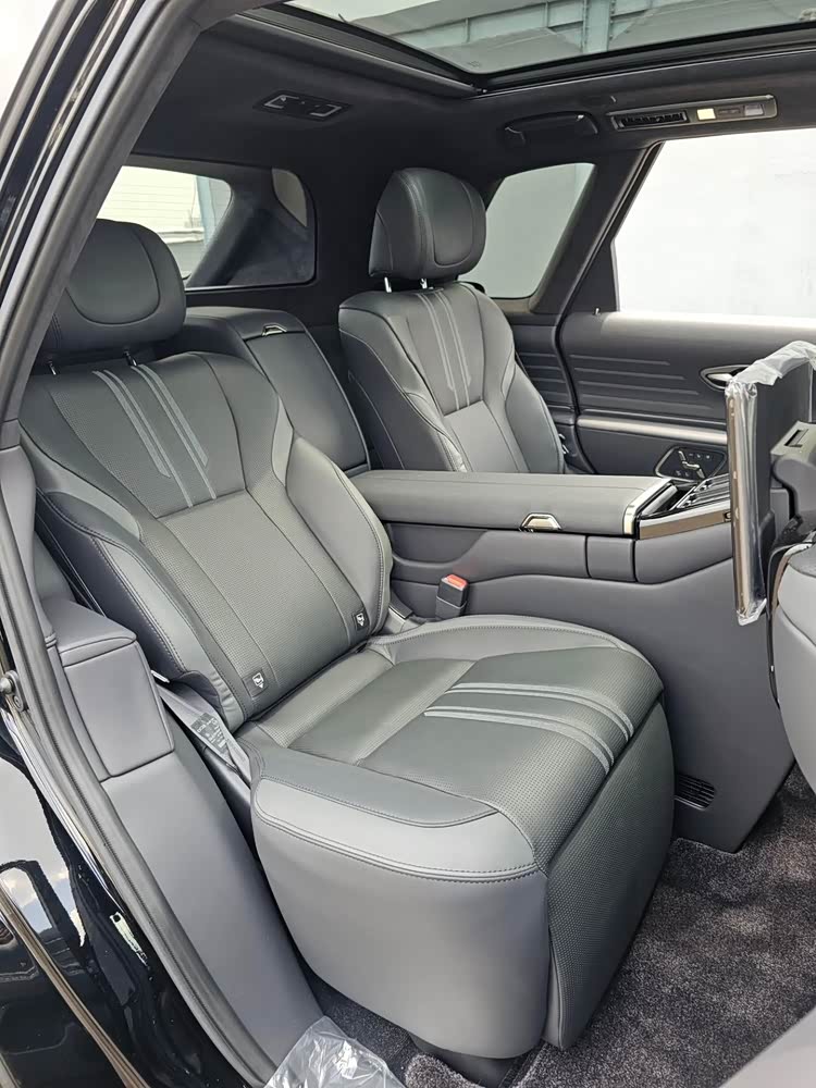 车内有着奢华的设计,提供悬浮式的中控屏幕,尺寸也是较大,副驾驶面板采用了简约的设计,还提供全液晶的仪表,后排座椅采用了独立的座椅造型,座椅带有腿托,提供后排显示屏,后排的配置表现还是非常丰富。