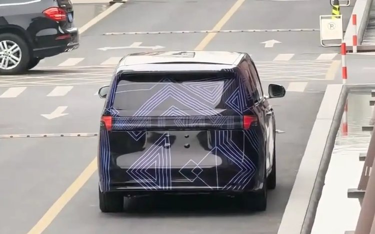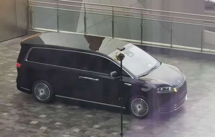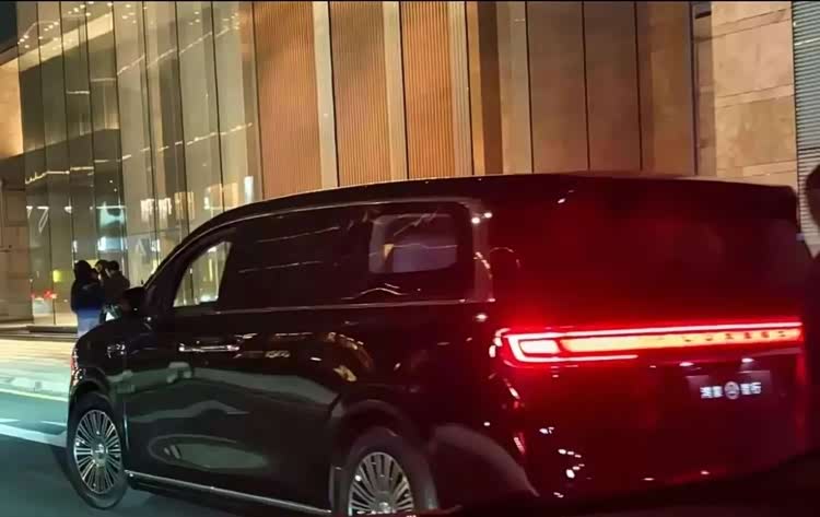 来到车身侧面,车身轮廓,采用短前后悬、长轴距的设计,A柱有着较大的倾角,配备大尺寸二排隐私玻璃,车辆侧门采用机械式门把手,隐藏式滑轨,采用车门边框镀铬装饰条,前翼子板上配有4D毫米波雷达,采用标准MPV双侧侧滑门,搭配密条辐的轮圈样式搭配米其林轮胎。前翼子板处设置摄像头,整车采用大量的镀铬饰条装饰。车身尺寸方面,据悉,新车的车长预计在5.3米左右,轴距预计在3.2米左右。
