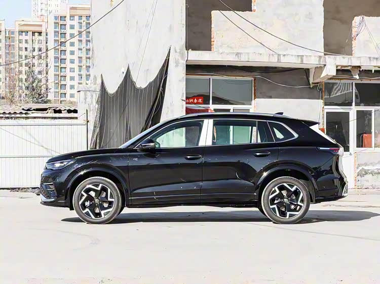 再来看车身侧面部分,车身尺寸为4735mm×1859mm×1682mm,轴距2791mm,延续了途观系列的经典比例。20英寸五辐式轮毂与隐藏式门把手设计,在降低风阻系数的同时,营造出蓄势待发的姿态。独有的侧裙黑化处理与悬浮式车顶,进一步强化运动属性。车窗镀铬饰条采用与车身同色设计,既提升豪华感,又避免传统镀铬件的突兀感。这种“黄金比例”设计在保证车内空间的同时,避免了同级车型常见的臃肿感。