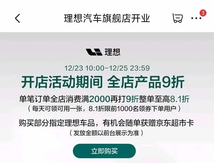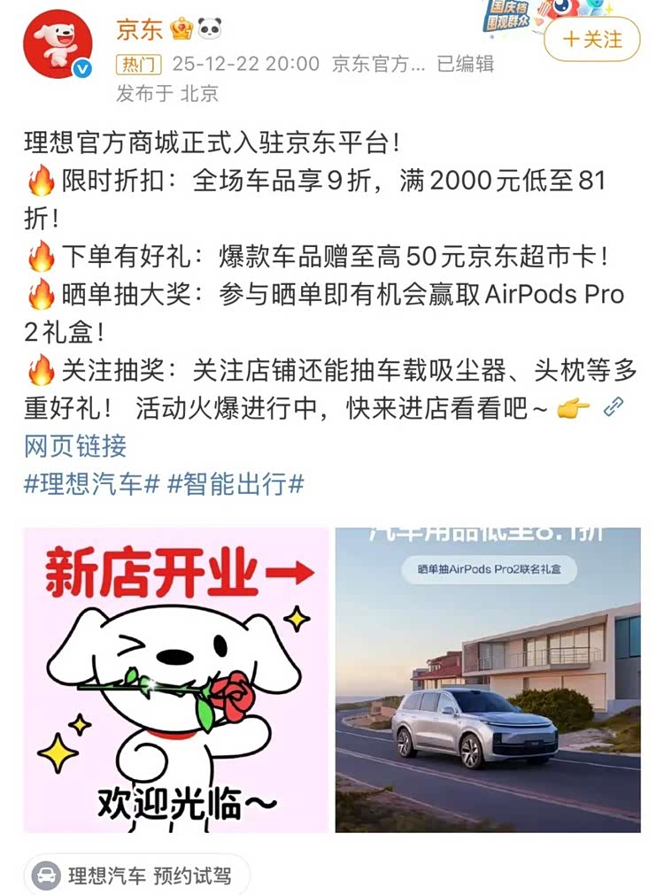 比如,最近理想汽车宣布官方商城独家入驻京东汽车。