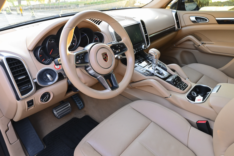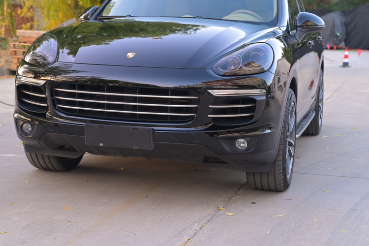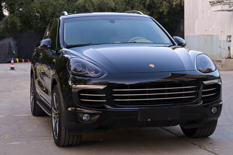 我们自营车车库里最近来这辆2016款3.0T的Cayenne。它是2017年上牌的。原厂是棕色,前车主贴的黑色车衣。
