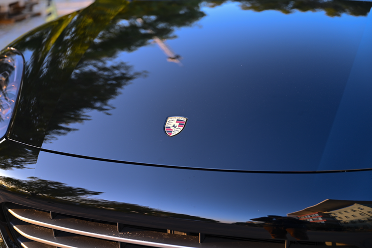 车衣的质感很棒,在阳光下有着深邃又透亮的光泽,跟保时捷原厂那个黑玉色的金属漆效果很相似。