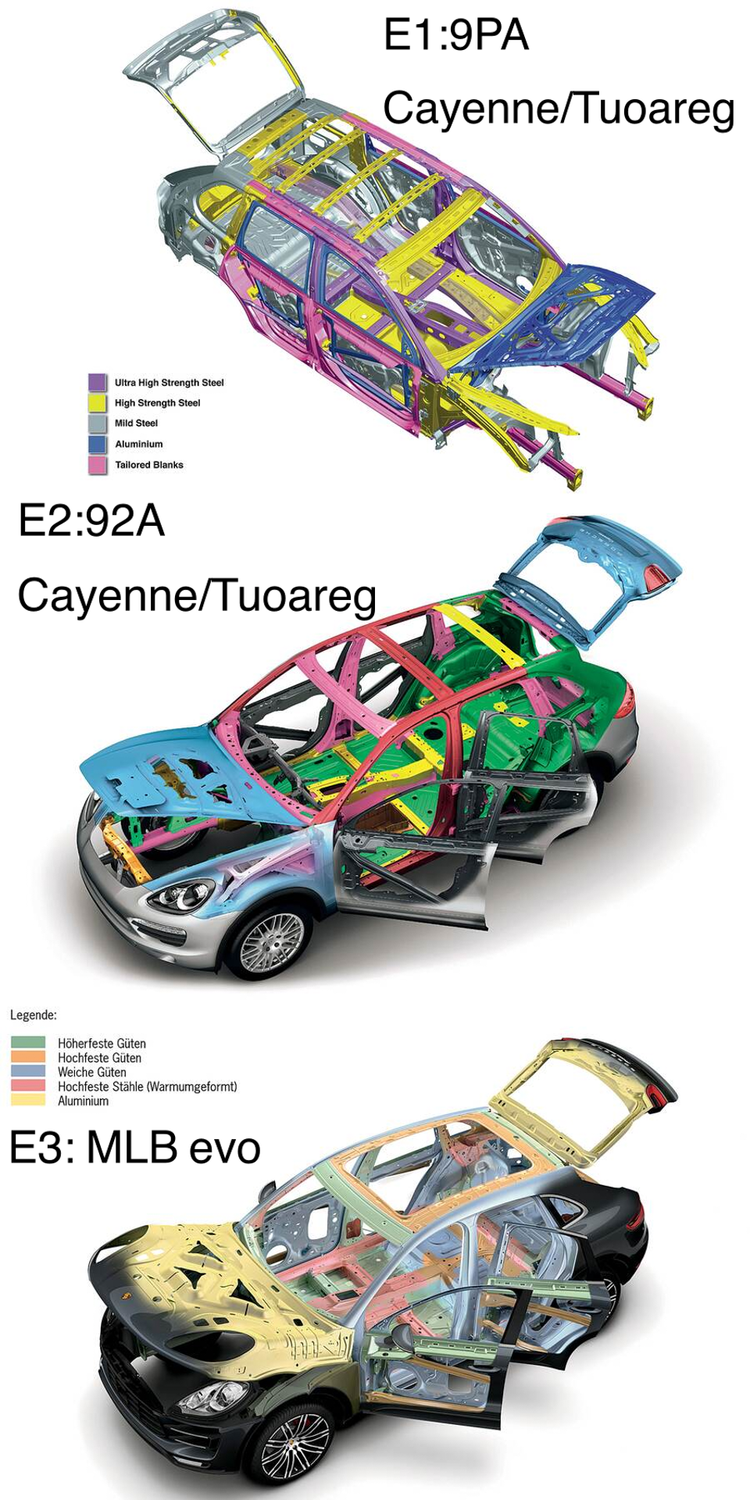 于是大众在90年代中期,召集了大众、奥迪、保时捷三方的技术和资源,想要从头开始研发一个既能扛起旗舰豪华SUV的大旗,又能支持舒适、运动、越野等多种底盘调校的模块化平台。结果非常成功,几年之后,就有了经典的纵置四驱平台PL71。