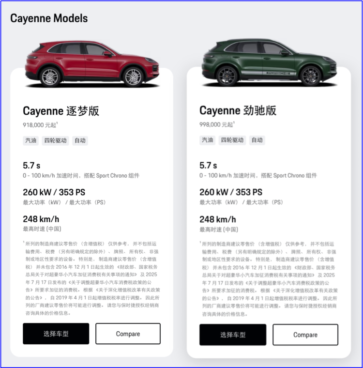 另外,现在买卡宴不用120万了。今年Cayenne官方指导价降价了,门槛价格裸车只需要91.8万,一些经销商还会给几万块钱的优惠。