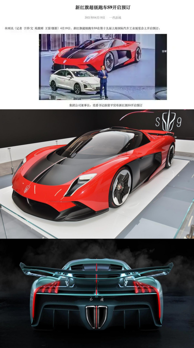而离开了法拉利的Amedeo Felisa,又来到一家合资公司,给红旗设计了一款售价超过8位数的超级跑车,红旗S9,具有V8发动机+3电机,总功率超过1400匹,极速超过400km/h。2021年开始全球预定,限量99辆,2022年开始交付(虽然至今路上没见过实车)。