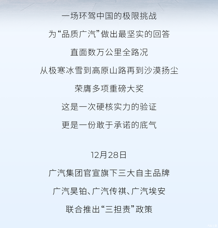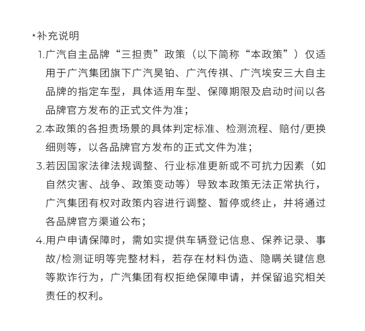 总的来说,广汽自主品牌推出的“三担责”政策,通过条文形式明确了厂家在特定质量问题上的责任,为车主提供了一定的保障。政策内容基于现有技术标准和法律法规,强调条件符合性与鉴定流程,力求在责任划分上做到清晰合理。车主在享受政策权益时,需注意遵守相关规定,以确保顺利处理可能发生的问题。未来,政策的实施细节可能会根据实际情况进行调整,但核心原则预计将保持稳定。