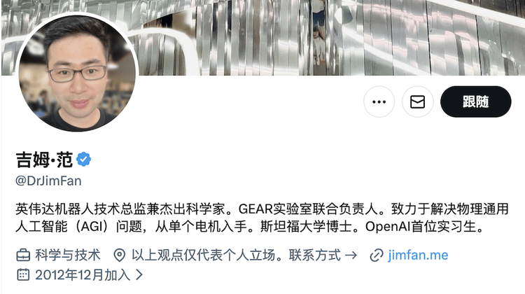 ▲英伟达机器人业务负责人、杰出科学家Jim Fan