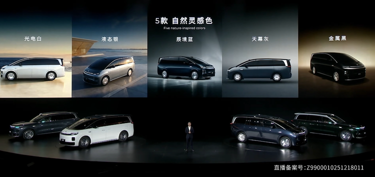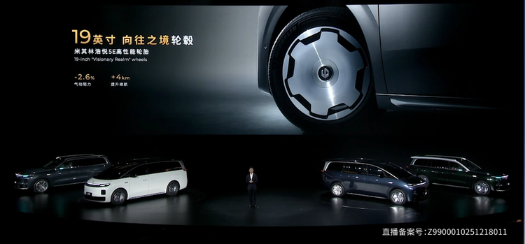 19英寸轮圈+米其林轮胎。外观五种颜色,专属的辰境蓝,另外会有白银黑灰四种颜色,采用巴斯夫车漆。