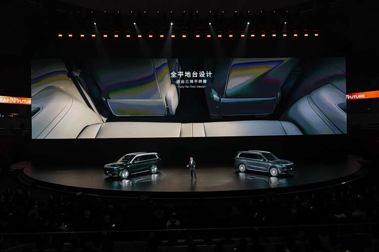 先简单介绍新车的内饰,新车采用环抱式内饰设计,中控台采用10.25英寸悬浮式全液晶仪表盘,搭配17.3英寸悬浮式中控大屏+60英寸 AR-HUD抬头显示+21.4英寸后排吸顶屏+6英寸后排显示屏的设计布局,形成五屏联动。配置方面,内置全新操作系统,并配有车载冷暖冰箱、2.7㎡的超大天幕、Leap Sound23扬声器等。