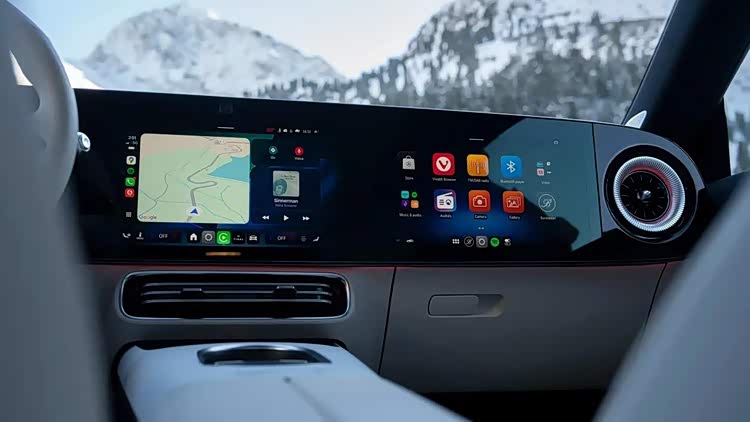 这款车的侧面和尾部设计与电动版本几乎一致,而在海外版本中,它并没有进行加长,更显其运动感。这款车拥有矮小的修长车身、无框的车门、隐蔽的车门手柄和大型轮毂等设计元素。其三厢尾门、翘起的鸭尾以及贯穿式的尾灯都得到了很好的延续,而后保险杠的装饰使整车展现出统一的风格。车辆的内部装饰与电动版本相似,悬浮式的三大显示屏成为了主要的视觉焦点,而平底方向盘则延续了老款的设计,圆形的空调出风口与氛围灯带相结合,增强了整体的设计感。