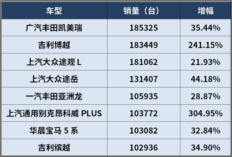 在车市竞争白热化态势下,特别是在造车门槛不高的新能源车变着花样对燃油车进行围攻之际,这些燃油车依然能够销量大涨,足见其强大的市场竞争力。