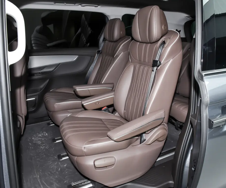 来到内饰,颜色的搭配有点沉闷,毕竟这种颜色更能突出商务风格,整体布局和日系车有点像,属于那种招人喜欢的布局。比如保留下机械式的仪表,保留下许多实体按键,电子档把的设计与本田如出一辙,使用起来非常便利。配置也是很高,无钥匙进入、一键启动、10.25英寸的中控屏,同样支持4G网络和语音唤醒功能,而且中配车型就有360°影像、主驾驶电动调节,前后头部气帘、在日常使用中,它的安全配置和舒适配置都是蛮高的。而且车内皮革材质覆盖率挺高的,包括工艺上的粉线,饰板的搭配都能为车内带来档次感。而且它的储物空间很多,如果与竞品相比,它会比本田奥德赛、传祺M8、GL8更有价格优势,预算不多考虑它没问题。