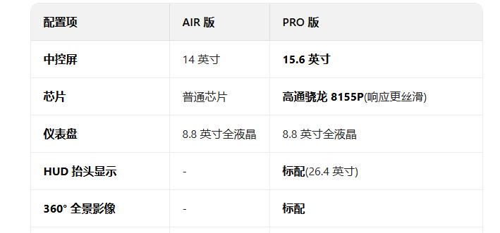 对于大多数家庭用户,PRO版很可能是一个“甜点”版本。它在AIR版的基础上,用一万元左右的价格,换来了车机体验、便利性和安全辅助功能的显著提升。这些升级在日常用车中接触频率很高,能有效提升便利性和舒适度,性价比显得相对突出。