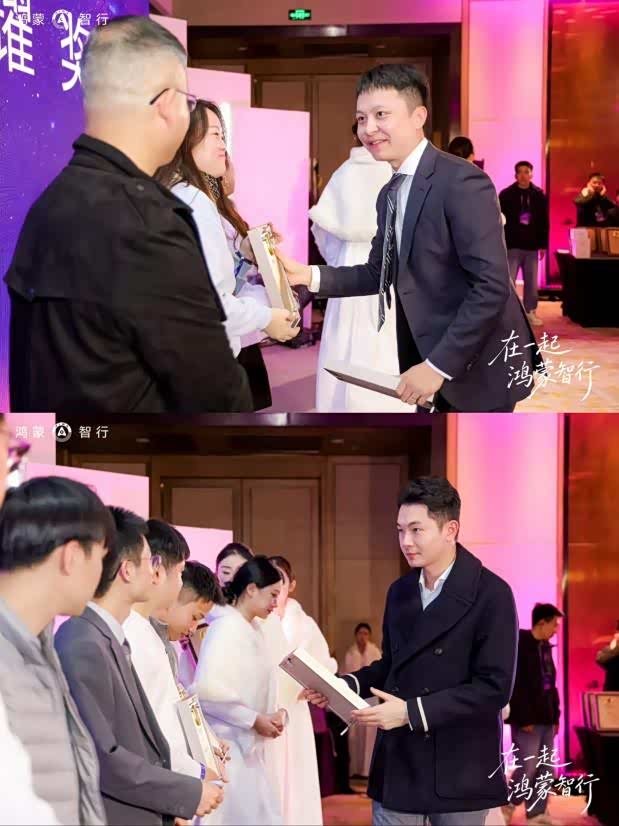 傍晚18时30分,盛大的颁奖晚宴将活动推向高潮。晚宴上,鸿蒙智行为优秀车主代表、年度贡献车主等颁发了多项荣誉奖项,感谢他们与品牌共同成长、携手同行。丰盛的佳肴、精彩的节目表演与不间断的互动抽奖,让现场欢声笑语不断,温情满溢。