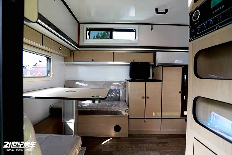 这款房车的硬核基因藏在骨子里,核心三大配置筑牢越野底气。搭载聚氨酯360旋转越野专用牵引头,适配多数牵引车型,复杂路况转弯掉头灵活不卡顿;高强度铝合金越野底盘轻量化又抗造,无惧碎石、泥泞路段颠簸;四明治越野专用车身板兼顾保温与抗冲击,应对温差大、路况差的户外环境得心应手,垂直硬升顶设计更是亮点,升顶后箱体尺寸达3.85×1.96×1.92米,车内空间豁然开朗,降顶后高度可控,通行更便捷。