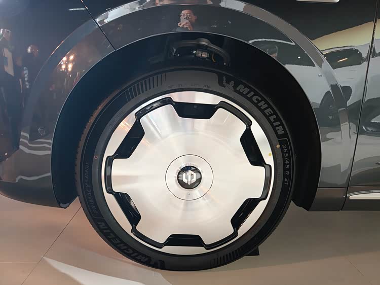1、 外观不再赘述,说几个细节:21英寸的大饼轮毂设计非常出色,解决了银色面积和未来感的平衡;车尾智驾小蓝灯是在后保险杠底部,有点神奇;前盖做了隐藏雨刷设计;双色车顶做出了双色车身的效果,花费不高效果很好。