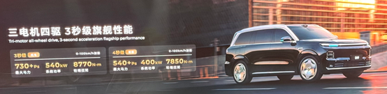 旗舰驾控:3电机矢量控制,3秒加速;爆胎稳定等;双腔空悬/CDC等;车身扭转刚度超50000N.m/deg。