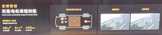 旗舰增程:80.3度大电池;500公里以上纯电续航;独创CTC电池技术;四驱。