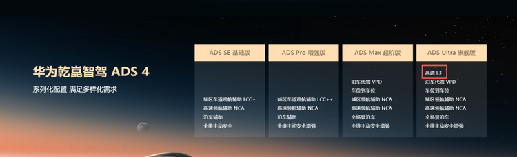 其次,我们再把目光锁定它的“里子”——华为全栈智能解决方案,这也是华境S的核心竞争力。全系标配华为乾崑ADS 4.0系统,甭管你是买高配还是低配,都带有智能辅助驾驶功能。