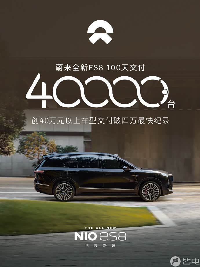 蔚来全新ES8百日交付破四万 刷新40万级市场纪录