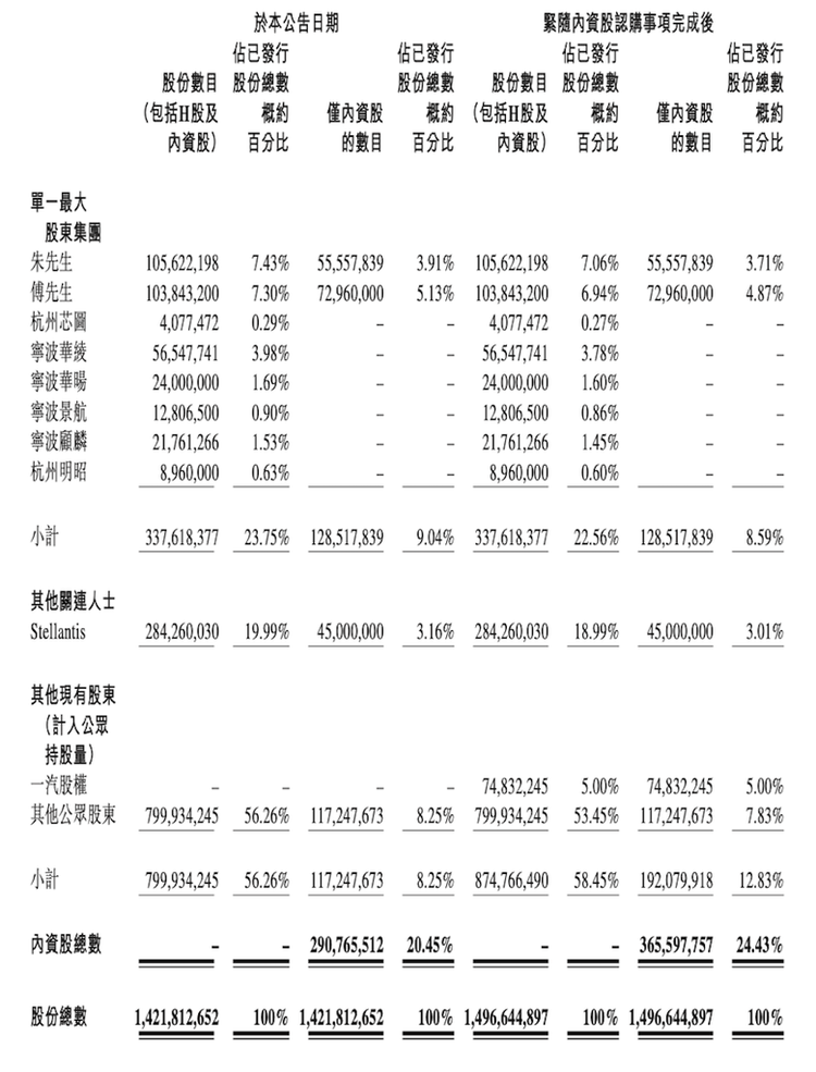 ▲认购完成后一汽股权将持有零跑约5%的股份