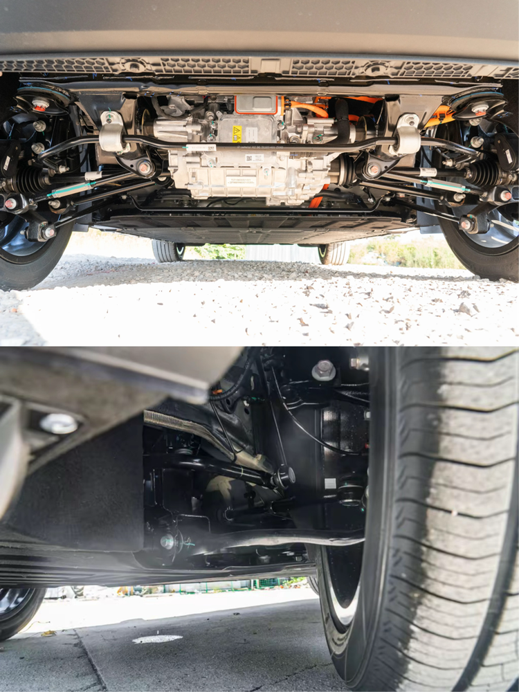 如果看电机数据的话,两款车的电机总功率都是160千瓦,而银河E5的电机扭矩比零跑B10还大,两款车的动力都不错,直线加速速度差不多,但是两款车的驾驶感受是零跑B10操控更好一点,这个可能就是后驱的优势,底盘来看的话两款车都是前麦弗逊悬挂后多连杆悬挂,这个悬挂组合方式既兼顾了经济性又兼顾了舒适性,麦弗逊悬挂的优点是稳定故障率低,后多连杆悬挂更兼顾舒适性。