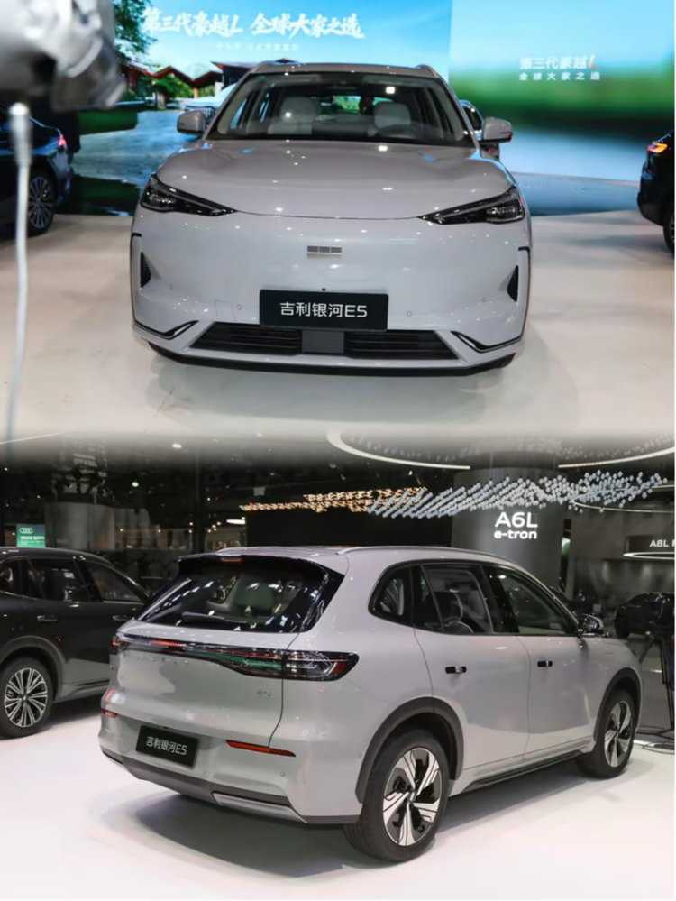 而银河E5前脸基本采用封闭式设计,传统造型的大灯设计,大灯造型真的是比较漂亮,但是前杠两侧的凹槽设计影响了美观度;侧面造型比较饱满,颜值这块来说也算不错,对于两款车的外观来说可以说是各有千秋,这个就看个人的审美了。