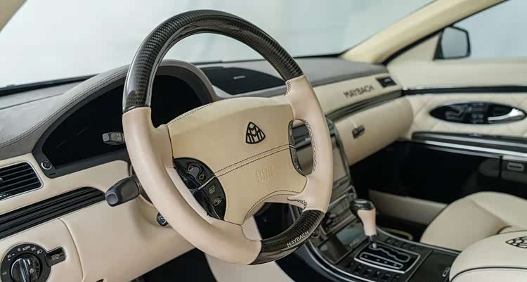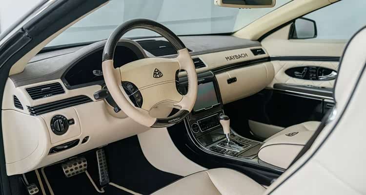 此次现世的这台,更是8台中难得的准新精品。新车最初于2009年以迈巴赫57S身份下线,2011年2月由德国柏林奔驰经销商交付,随后便送入Xenatec进行定制改造,全程保留原厂配色:波罗的海亮黑车身,搭配米色专属真皮内饰,经典配色永不过时,尽显迈巴赫的雍容华贵。