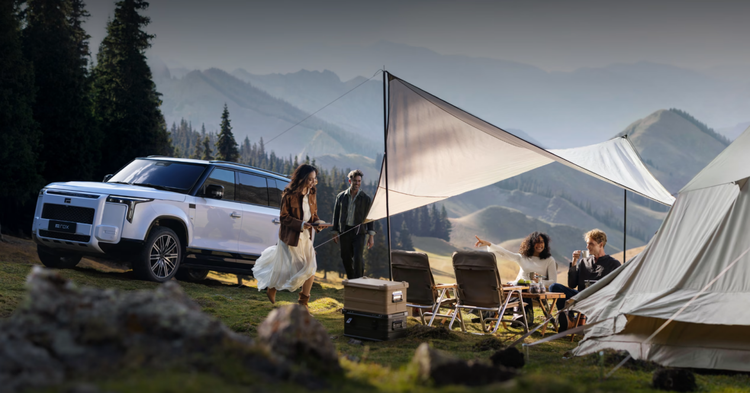 七座版的宗旨就是“无差别满足全家需求+户外折腾自由”。2+2+3的座椅布局看似常规,但藏着不少实用小心思,二三排之间183mm的中央通道,让老人孩子上下第三排不用“翻山越岭”,比很多七座车的“被迫翻折座椅”人性化多了。更关键的是,座椅支持一键放平,瞬间变身“大床房模式”,搭配车顶300kg的承载能力(能装车顶帐篷)和尾门户外餐吧2.0(带折叠操作台、供水系统),周末带全家露营,做饭、休息、储物一站式搞定,堪称“移动的户外起居室”。