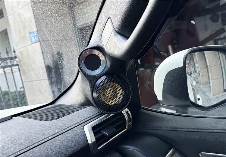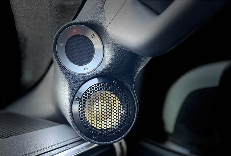 与气动高音在A柱上并肩安装的,是Larkmax傲势之声的M90三寸中音单元,特殊的黄盆振膜设计,并搭载环形强力钕磁驱动系统,能更好地将高音和中低频衔接起来,并还原出充沛的中频能量,人声表现自然饱满,极具质感。