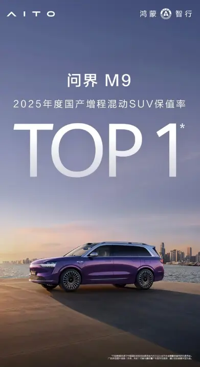 基于产品综合表现,问界M9在市场上处于引领地位。其连续20个月稳居50万元以上豪华SUV细分市场销量第一、连续两期获得全车型用户净推荐值(NPS)第一,以及2025年度国产增程混动SUV保值率第一等多项权威认证印证了问界M9的核心竞争力。