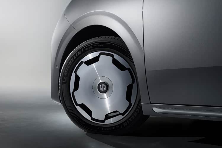 后方的造型相对方正,能够为座舱争取更多空间。屋檐式的镀铬条带来遮风挡雨的感觉。整个侧窗实现了平整化布置,立柱与玻璃位于同一曲面,不仅看起来很有高级感,更能降低高速风噪。提供隐藏弹出式门把手,19英寸的花瓣状低风阻轮圈与整体搭配也十分和谐。