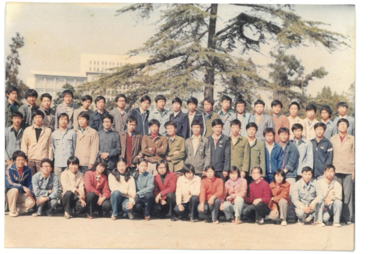 1986年,朱江明(二排左一),敬华(前排左五),入学浙江大学(时为杭州大学)电子技术专业合影