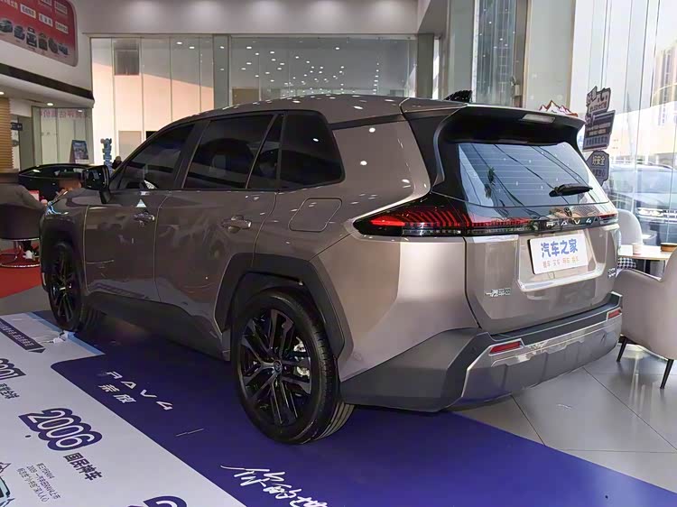 再来看车尾部分,车尾设计延续整车硬派简约风格,与车头形成视觉呼应。尾灯组采用独特的三角形灯腔轮廓,内部密集的竖条灯带配合黑化处理,夜间点亮后辨识度极高,下方的“RAV4”标识采用立体镌刻工艺,提升精致感。车顶扰流板不仅优化空气动力学表现,还集成高位刹车灯,增强行车安全性。后保险杠同样配备大面积黑色防擦饰板,与车头呼应形成统一风格,下方扩散器造型提升运动感的同时,能有效梳理车尾气流。Rugged系列车型新增车尾拖车钩接口,进一步强化越野工具属性,满足户外露营拖拽需求。
