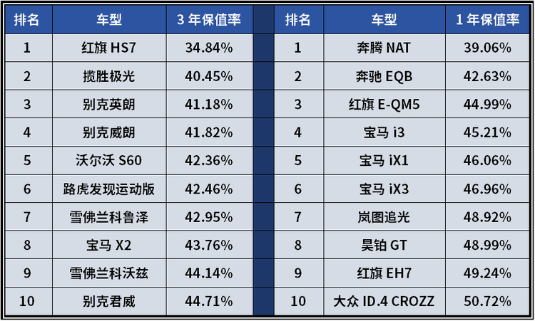 根据贬值榜单数据,有十款车型的三年保值率,都下跌了一半以上。而红旗汽车的一款中大型SUV—— 红旗HS7(参数|询价)更是贬值得非常厉害,幅度高达60%多,保值率只有34.84%。买了这款车的人,如果以这个价格出售的话,可能会肉痛的睡不着觉。