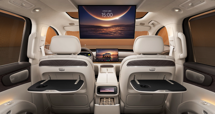 智能座舱配备60英寸AR-HUD、17.3英寸中控屏等多屏交互系统,操作流畅便捷。动力方面,增程版采用全球首创双能电机增程四驱,纯电续航500km,支持800V快充;纯电版搭载三电机,百公里加速进入3秒级,115kWh电池容量实现720km纯电续航,全栈1000V架构引领行业标准。