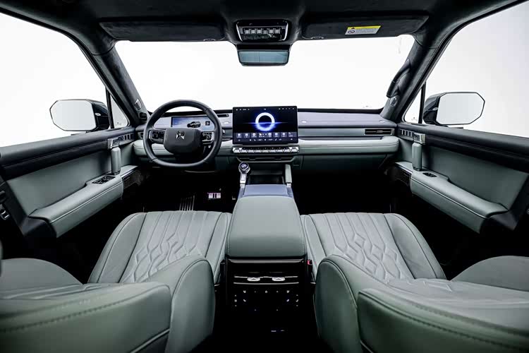 从整体设计来看,极石ADAMAS延续了极石品牌一贯的“都市探险家”风格,在保留硬派轮廓的同时,融入大量流线型元素与隐藏式门把手、贯穿式LED灯带等新能源设计语言。车身线条干净利落,漆面质感高级。车内采用Nappa真皮与胡桃木饰板的混搭,后排航空座椅支持180度旋转并配备车载冰箱,甚至在后排中央扶手内藏有折叠办公桌,这台“能越野的豪华SUV”在细节上将"移动行宫"的概念具象化,是一台适合城市通勤与轻中度越野场景。