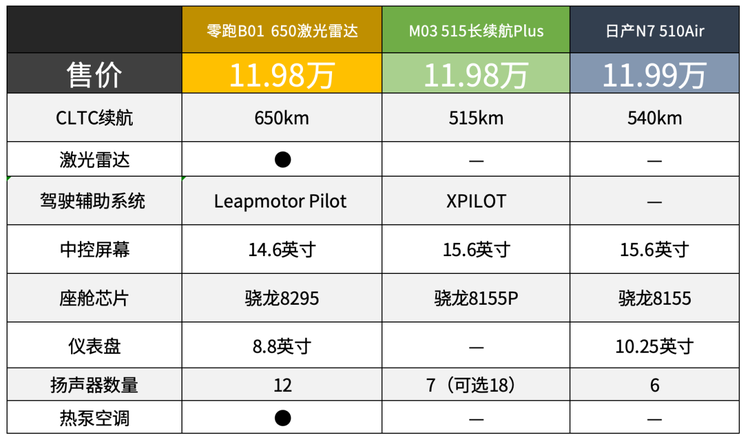 纵观8-12万的纯电市场,8万出头可以考虑吉利星愿、比亚迪海鸥等定位偏低的小型车,而像是日产N7、小鹏MONA M03等热门车型都要去到12万以上。零跑B01不到9万起售,顶配12万封顶,精准切中8-12万的价格区间。