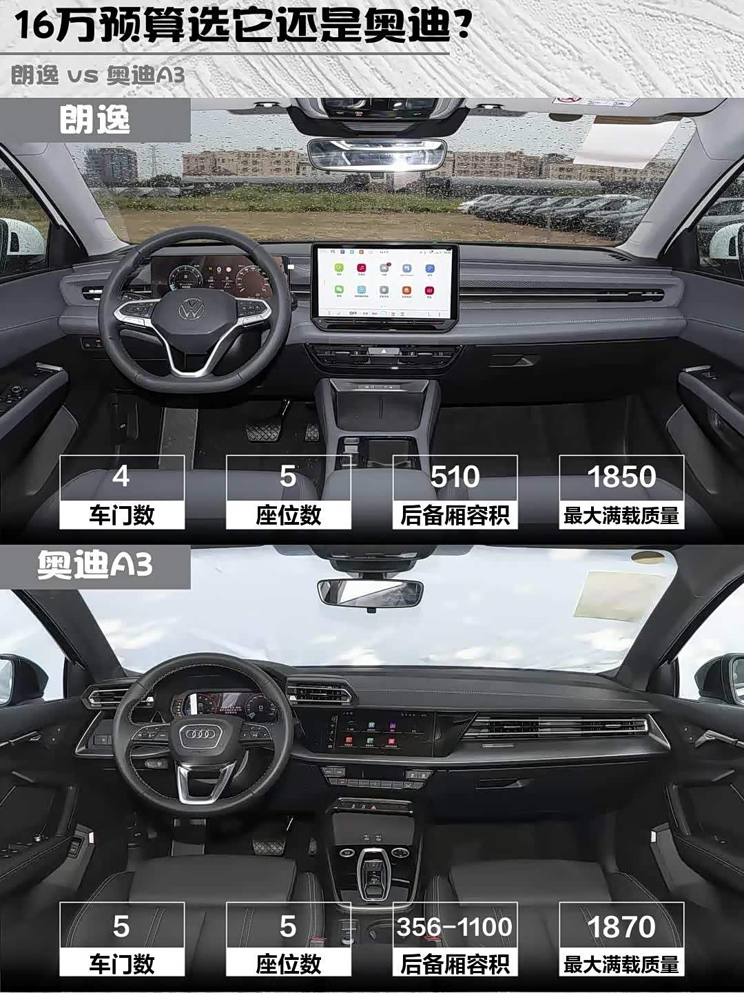 朗逸后排能跷二郎腿!4720mm车长+510L后备箱,婴儿车+行李箱随便塞。A3后排我178cm坐直会顶头,后备箱常规状态只有356L(但放倒座椅能扩到1100L)。不过A3的电动尾门真香,朗逸得手动关...
