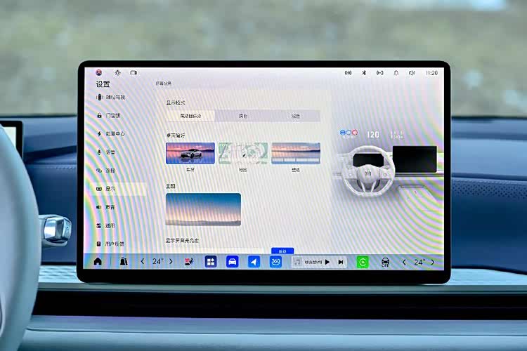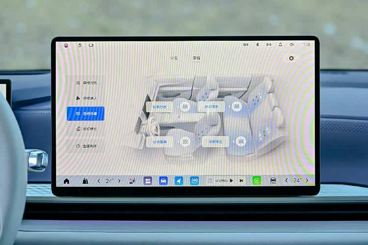 屏幕上方的动态环绕氛围灯带支持256色无极调节,并可智能模拟“海浪”、“森林星光”等多种自然光影,光线柔和地漫反射在精致的环保麂皮绒材质上,配合“水生美学”主题的车机界面,确实在都市之中营造出了一种“归隐山林”的宁静氛围,这种感官体验上的“东方韵味”,是至境L7内饰设计的核心亮点。
