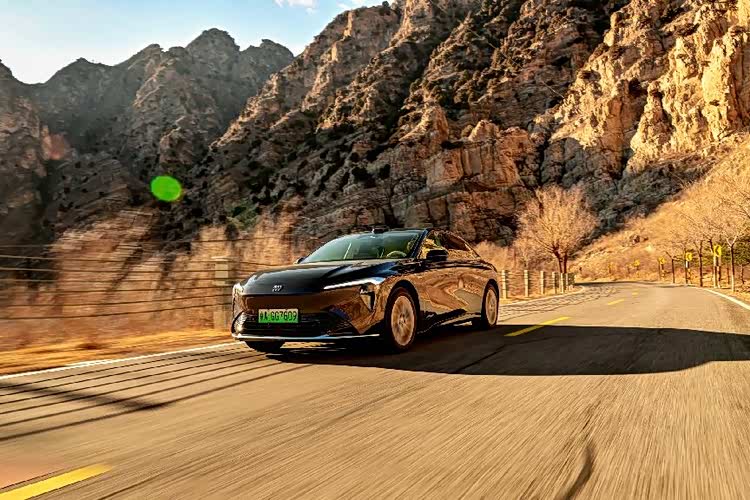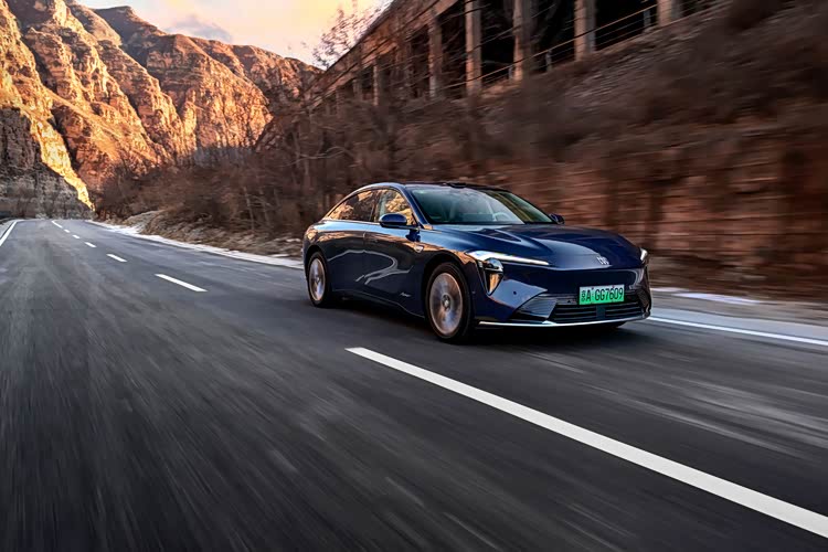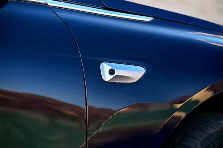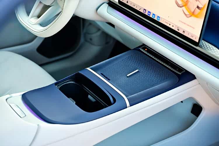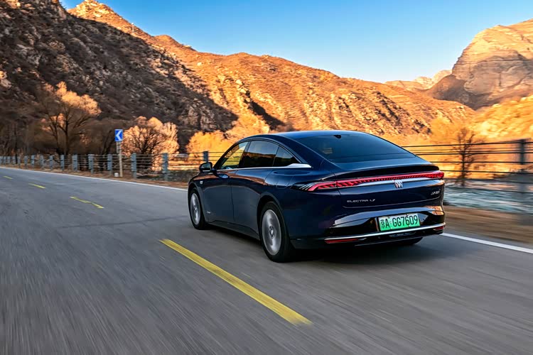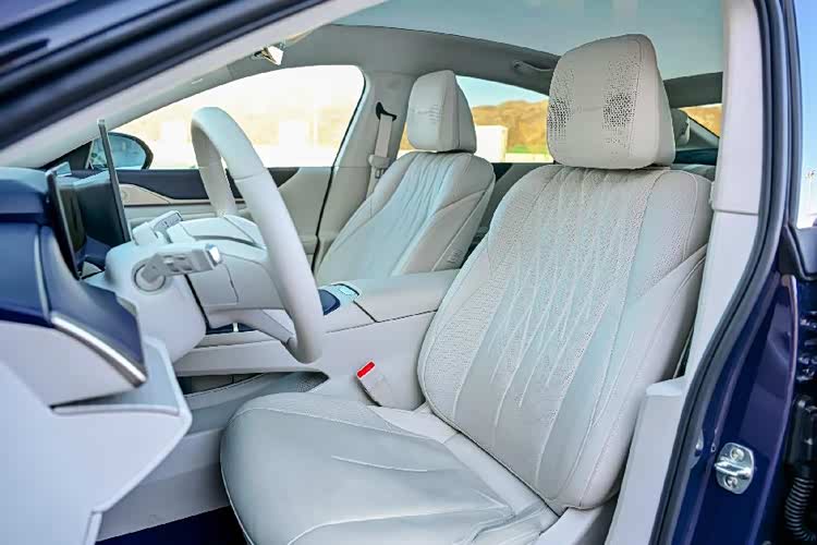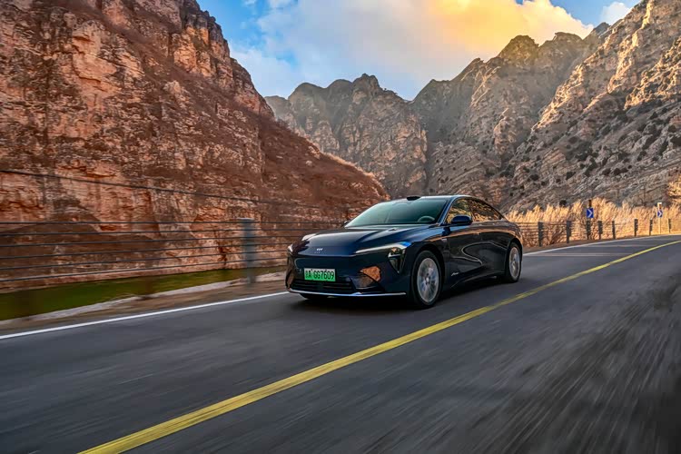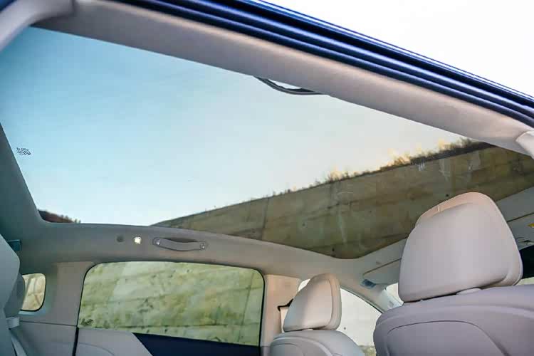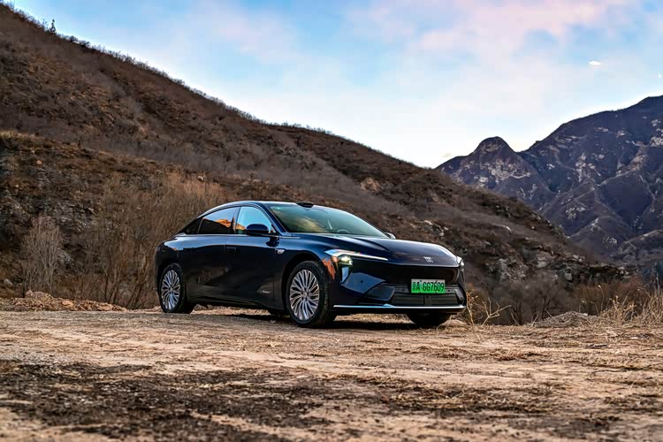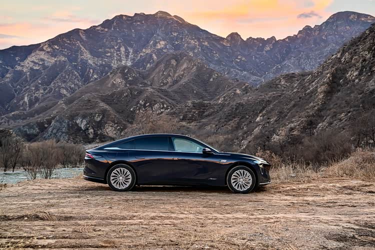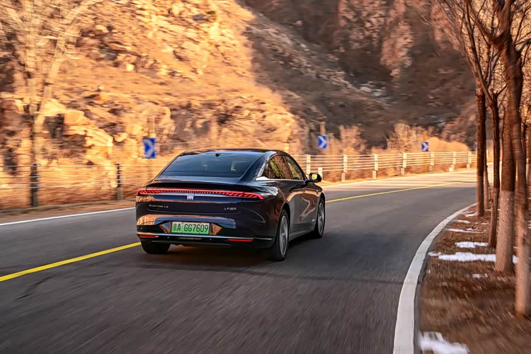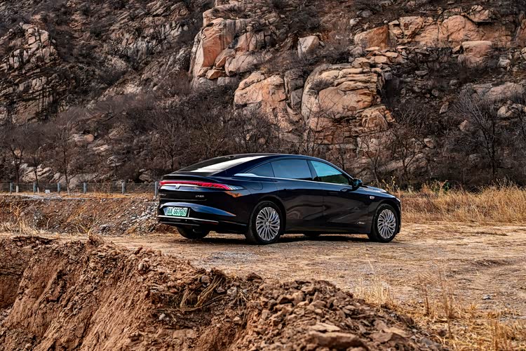 车身侧面的线条更是将这种纯粹发挥到极致,一条自前翼子板向后平直流畅的腰线,配合自A柱便开始下压的流线型车顶弧线,勾勒出近似GT轿跑的优雅轮廓。无框车门、隐藏式门把手、以及低风阻设计的19英寸铝合金轮圈,共同将风阻系数优化到了0.228。这种对空气动力学的极致追求,其目的不仅在于塑造视觉上的高级感,更在于为最终的续航数字贡献每一分力量。