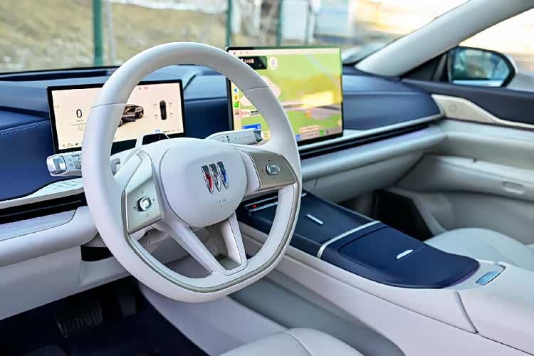 细节处,通过运用大量横向延展的线条和干净利落的曲面,取代了传统燃油车复杂的肌肉感和镀铬堆砌,封闭式前脸是新能源时代的身份名片,但别克巧妙地将家族式的展翼格栅隐藏于底部,既电感满满,也能满足增程器的散热功能。两侧是由152颗独立LED光源构成的“银河星空”矩阵式大灯,在解锁车辆的瞬间,灯光如流水般自中心向两侧次第点亮,仿佛缓缓展开的星空图卷,仪式感与科技感兼备。